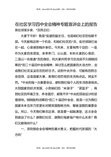 在社区学习四中全会精神专题宣讲会上的报告.docx