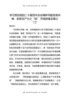学习贯彻党的二十届四中全会精神专题党课讲稿:新质生产力之“钥”开高质量发展之“门”.docx