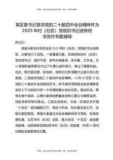 某区委书记宣讲党的二十届四中全会精神并为2025年村(社区)党组织书记进修班学员作专题辅导.docx
