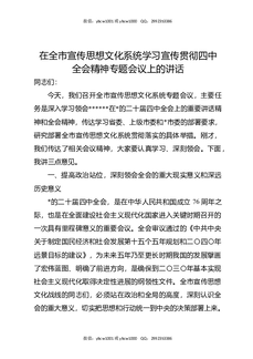 在全市宣传思想文化系统学习宣传贯彻四中全会精神专题会议上的讲话.docx