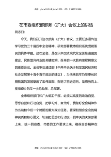 在市委组织部部务扩大会议上的讲话(二十届四中全会).docx
