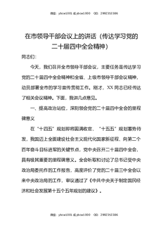 在市领导干部会议上的讲话(传达学习党的二十届四中全会精神).docx