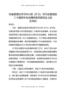 在省委理论学习中心组(扩大)学习会暨党的二十届四中全会精神宣讲报告会上的主持词.docx