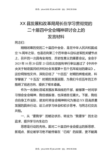 XX县发展和改革局局长在学习贯彻党的二十届四中全会精神研讨会上的发言材料.docx