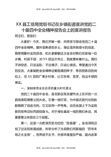 XX县工信局党组书记在乡镇街道宣讲党的二十届四中全会精神报告会上的宣讲报告.docx