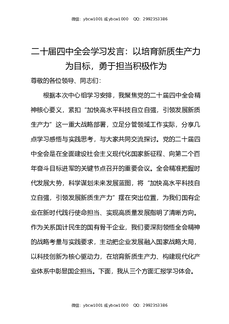 二十届四中全会学习发言:以培育新质生产力为目标,勇于担当积极作为.docx