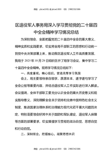 区退役军人事务局深入学习贯彻党的二十届四中全会精神学习情况总结.docx