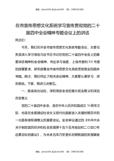 在市宣传思想文化系统学习宣传贯彻党的二十届四中全会精神专题会议上的讲话.docx
