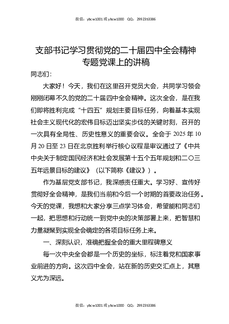 支部书记学习贯彻党的二十届四中全会精神专题党课上的讲稿.docx