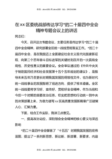 在XX区委统战部传达学习党的二十届四中全会精神专题会议上的讲话.docx