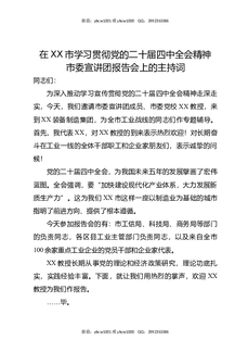 在XX市学习贯彻党的二十届四中全会精神市委宣讲团报告会上的主持词.docx