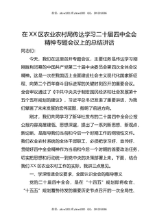 在XX区农业农村局传达学习二十届四中全会精神专题会议上的总结讲话.docx