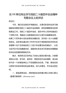 在XX单位传达学习党的二十届四中全会精神专题会议上的讲话.docx