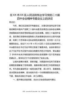在XX市XX区人民法院传达学习党的二十届四中全会精神专题会议上的讲话.docx