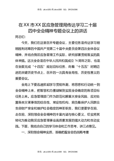 在XX市XX区应急管理局传达学习二十届四中全会精神专题会议上的讲话.docx