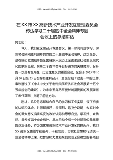 在XX市XX高新技术产业开发区管理委员会传达学习二十届四中全会精神专题会议上的总结讲话.docx