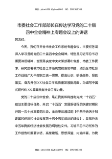 市委社会工作部部长在传达学习党的二十届四中全会精神上专题会议上的讲话.docx