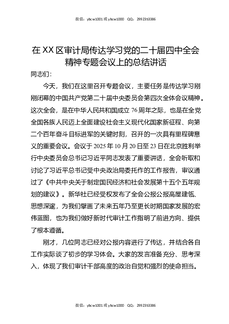 在XX区审计局传达学习党的二十届四中全会精神专题会议上的总结讲话.docx