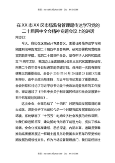 在XX市XX区市场监督管理局传达学习党的二十届四中全会精神专题会议上的讲话.docx