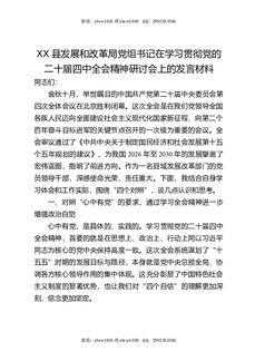 XX县发展和改革局党组书记在学习贯彻党的二十届四中全会精神研讨会上的发言材料.docx