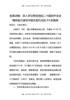 党课讲稿:深入学习贯彻党的二十届四中全会精神奋力谱写中国式现代化的XX新篇章.docx