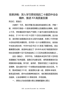 党课讲稿:深入学习贯彻党的二十届四中全会精神,推进XX高质量发展.docx
