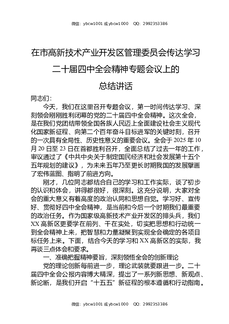 在市高新技术产业开发区管理委员会传达学习二十届四中全会精神专题会议上的总结讲话.docx