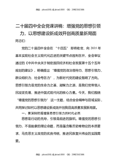 二十届四中全会党课讲稿:增强党的思想引领力,以思想建设新成效开创高质量新局面.docx