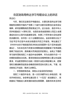(四中全会)在区财政局传达学习专题会议上的讲话.docx