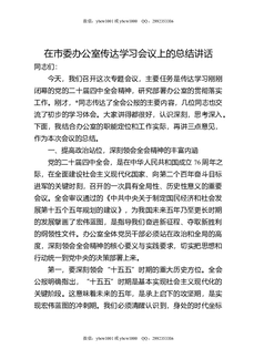 (四中全会)在市委办公室传达学习会议上的总结讲话.docx