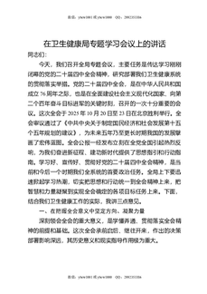 (四中全会)在卫生健康局专题学习会议上的讲话.docx