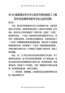 在XX县委理论学习中心组学习贯彻党的二十届四中全会精神专题学习会上的讲话稿.docx