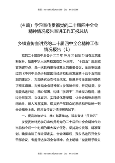 (4篇)学习宣传贯彻党的二十届四中全会精神情况报告宣讲工作汇报总结.docx
