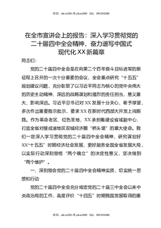 在全市宣讲会上的报告:深入学习贯彻党的二十届四中全会精神,奋力谱写中国式现代化XX新篇章.docx