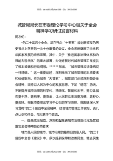 城管局局长在市委理论学习中心组关于四中全会精神学习研讨发言材料.docx