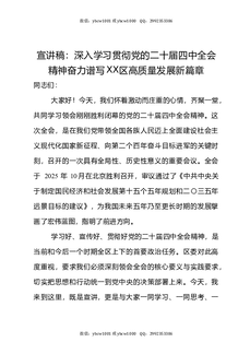 宣讲稿:深入学习贯彻党的二十届四中全会精神奋力谱写XX区高质量发展新篇章.docx