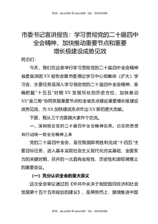 在全市党的二十届四中全会精神宣讲会上的宣讲报告.docx