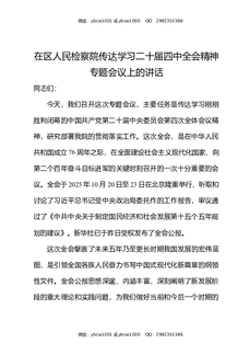在区人民检察院传达学习二十届四中全会精神专题会议上的讲话.docx