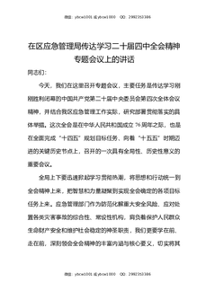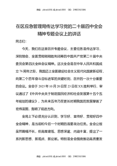 在区应急管理局传达学习党的二十届四中全会精神专题会议上的讲话.docx