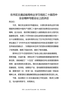 在市区交通运输局传达学习党的二十届四中全会精神专题会议上的讲话.docx