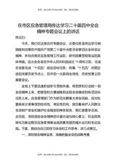 在市区应急管理局传达学习二十届四中全会精神专题会议上的讲话.docx