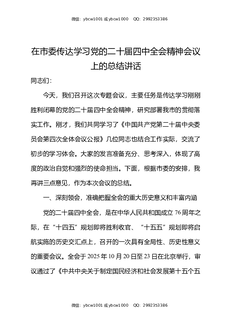 在市委传达学习党的二十届四中全会精神会议上的总结讲话.docx