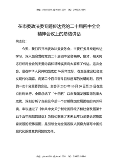 在市委政法委专题传达党的二十届四中全会精神会议上的总结讲话.docx