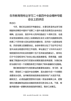 在市教育局传达学习二十届四中全会精神专题会议上的讲话.docx
