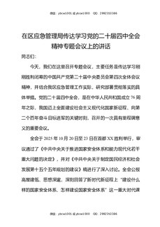 在区应急管理局传达学习党的二十届四中全会精神专题会议上的讲话(2).docx