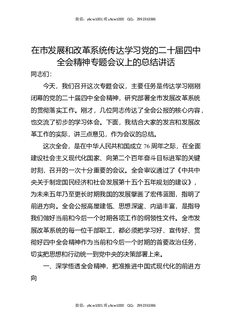 在市发展和改革系统传达学习党的二十届四中全会精神专题会议上的总结讲话.docx