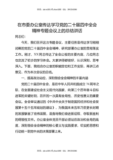 在市委办公室传达学习党的二十届四中全会精神专题会议上的总结讲话.docx