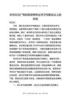 (四中全会)在市文化广电和旅游局传达学习专题会议上的讲话.docx