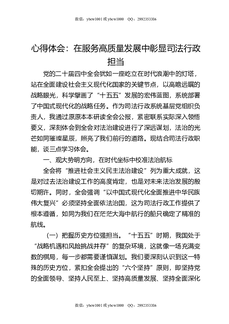 (四中全会)心得体会:在服务高质量发展中彰显司法行政担当.docx