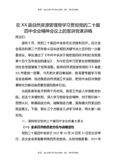 在XX县自然资源管理局学习贯彻党的二十届四中全会精神会议上的宣讲党课讲稿.docx